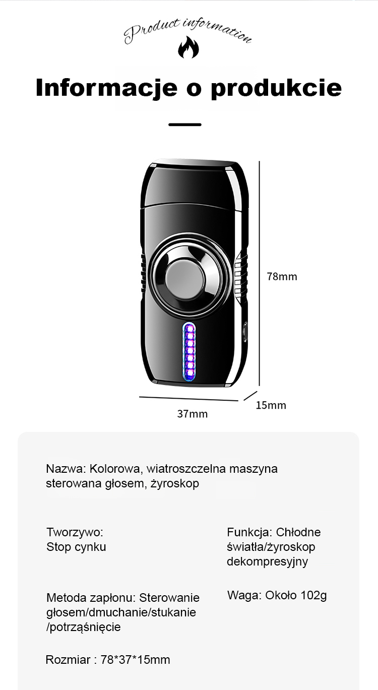 【Bezpłatna wersja próbna】【Wielokolorowe Efekty Świetlne】Metaliczna Inteligentna Zapalniczka Sterowana Głosem